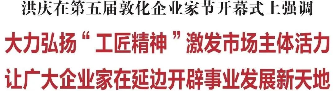 洪庆指出,省委常委、州委书记胡家福十分重视企业家群体发展,提出了“大力弘扬精益求精、追求卓越的‘工匠精神’,不断激发市场主体活力,让广大企业家在延边这片创业沃土上开辟事业发展新天地”的要求。近年来,敦化市委、市政府坚持以建设全省绿色转型创新发展示范区为重要抓手,经济社会发展取得长足进步。特别是自2019年以来,在全省首创“企业家节”,为构建“亲清”新型政商关系,营造“重商亲商安商富商”良好氛围奠定了坚实基础。希望敦化及延边各界的企业家能够积极践行新发展理念,不断提高驾驭复杂局面的能力水平,深入了解延边、切身感受延边、投资建设延边,在更高层次、更宽领域实现互利共赢。敦化市委、市政府要全面落实好州委、州政府保护支持市场主体的优惠政策措施,以一域争先为全州添彩。州委、州政府将一如既往地支持敦化发展、支持域内企业发展,让广大企业家扎根深耕延边、再创佳绩。