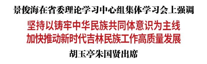 7月21日,省委书记景俊海主持召开省委理论学习中心组集体学习会,专题学习习近平总书记关于加强和改进民族工作的重要思想。他强调,要深入贯彻习近平总书记重要讲话重要指示精神,坚持以铸牢中华民族共同体意识为主线,加快推动新时代吉林民族工作高质量发展,动员全省各族人民为全面建设社会主义现代化新吉林而团结奋斗。省委副书记、省长胡玉亭,省政协主席朱国贤出席会议。