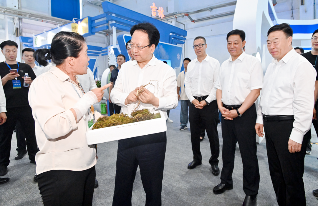景俊海、胡玉亭观看了黑土地保护成果实景展、“黑土粮仓”科技会战成果展,到各市(州)展位察看了解特色农产品开发销售等情况,与中国农业科学院、中国科学院东北地理所、中国农业大学等知名高校和科研院所的科研人员深入交流,鼓励他们在吉林推广普及更多良种良机良法,让农民用得上、用得起、用得好,助力吉林提升生产效率、建设农业强省。