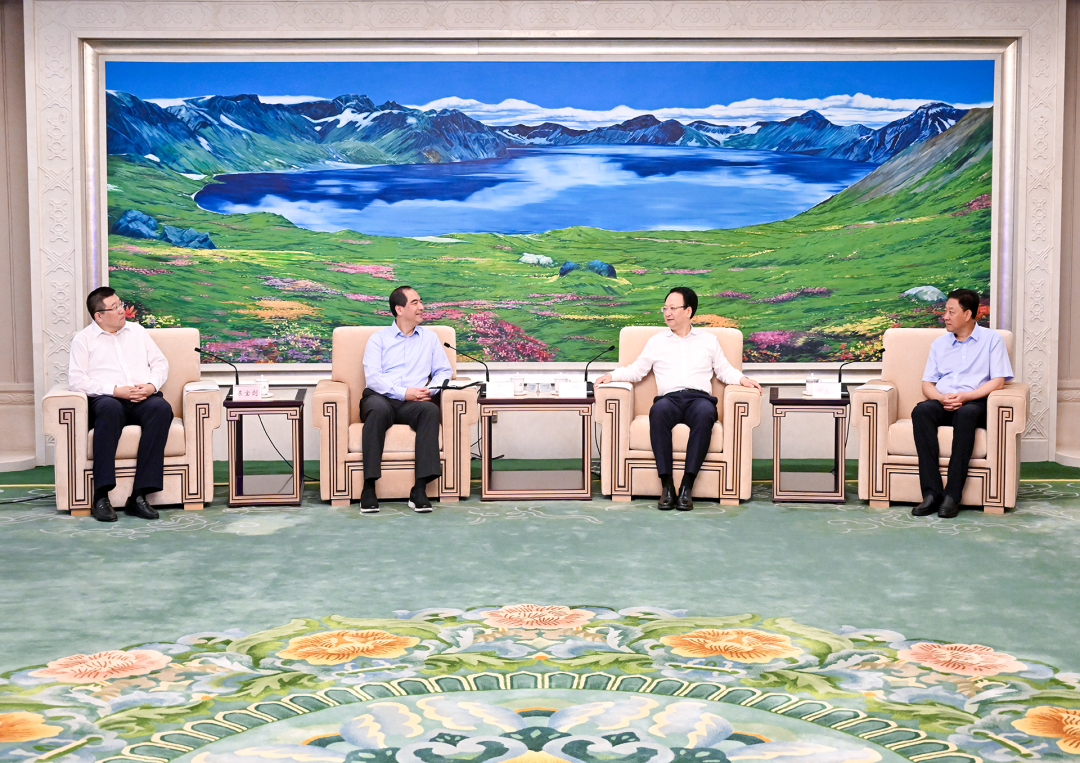 7月23日,省委书记景俊海,省委副书记、省长胡玉亭在长春会见北京大学校长、中国科学院院士龚旗煌一行。