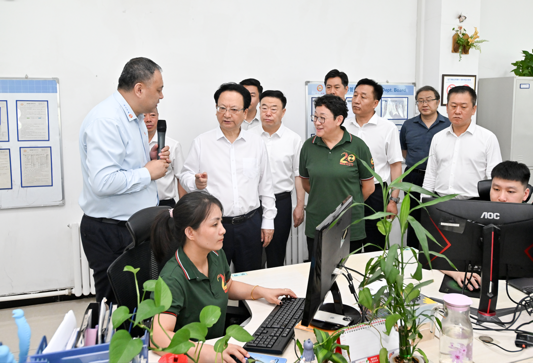 合心机械制造公司主攻智改数转系统服务,现已拥有191项专利技术,获评国家级高新技术企业、国家级专精特新“小巨人”企业。景俊海详细了解研发生产情况。得知企业与国外开展了广泛合作,景俊海给予充分肯定,希望加快技术迭代和模式创新,努力保持行业领先优势,更好开拓国际国内市场,同时要求有关部门大力推广智改数转模式,促进全省企业加快转型升级步伐。