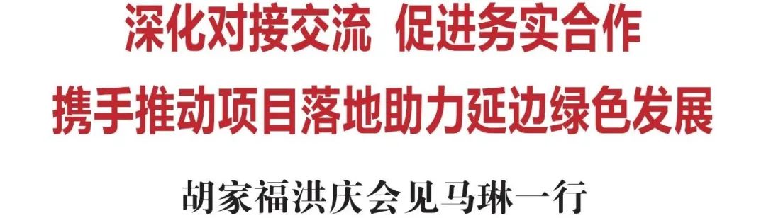 胡家福代表州委、州政府对马琳一行的到来表示欢迎。他说,延边优惠政策富集、资源禀赋优质、产业特色鲜明,是一片生态的福地、投资的沃土。当前,全州上下正深入贯彻习近平总书记视察吉林视察延边重要讲话重要指示精神,聚焦碳达峰碳中和目标,不断拓宽绿水青山转化金山银山路径,统筹开展国家低碳城市创建、国家林业碳汇试点工作,积极探索林业碳汇票、林业碳汇贷等新模式,加快食品、矿产等传统产业全流程绿色化改造,培育壮大绿色清洁能源、医美康养等战略性新兴产业,全力以赴推动产业生态化和生态产业化,朝着生态美、产业兴、百姓富的目标不断奋进。希望各位企业家以此次考察为契机,深入了解延边、关注延边,把延边作为业务拓展的重要板块,找准企业战略与延边发展的结合点,把更多资本、技术、项目引入延边,在碳汇金融、清洁能源、无废城市建设等领域谋划重大项目、深耕延边市场,努力推动形成更多合作成果,为延边跨越赶超提供生态支撑、注入绿色动能。延边州委、州政府将高度重视、持续关注企业需求,竭诚为企业提供更加便捷高效的政务服务、公平公正的法治环境、舒心顺心的投资环境,让企业在延边投资一路顺心、办事一路绿灯、发展一路长虹。