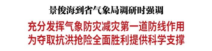 8月8日,省委书记景俊海到省气象局调研。他强调,要深入贯彻习近平总书记对防汛救灾工作作出的重要指示精神,始终坚持人民至上、生命至上,充分发挥气象防灾减灾第一道防线作用,持续强化灾害预报预警,为夺取抗洪抢险全面胜利提供科学支撑。