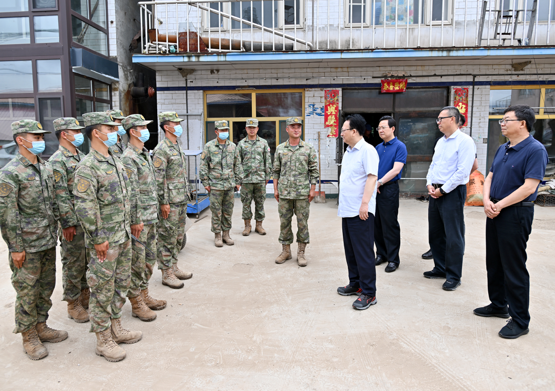 8月10日,省委书记景俊海到舒兰检查指导防汛救灾和灾后重建工作,看望慰问参与救灾的解放军战士。
