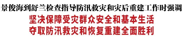 8月10日,省委书记景俊海再次来到吉林舒兰市,实地检查指导防汛救灾和灾后重建工作。他强调,要全面落实习近平总书记关于防汛救灾工作的重要指示精神,始终坚持人民至上、生命至上,坚决保障受灾群众安全和基本生活,奋力夺取防汛救灾和恢复重建全面胜利。