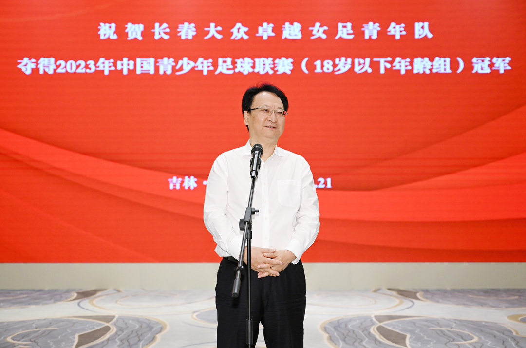 在2023年中国青少年足球联赛(女子18岁以下年龄组)比赛中,长春大众卓越女足青年队脱颖而出、夺得冠军。8月21日,省委书记景俊海,省委副书记、省长胡玉亭接见载誉而归的长春大众卓越女足青年队。