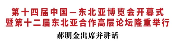 8月23日,第十四届中国—东北亚博览会开幕式暨第十二届东北亚合作高层论坛在长春隆重举行。全国人大常委会副委员长郝明金出席开幕式并讲话。