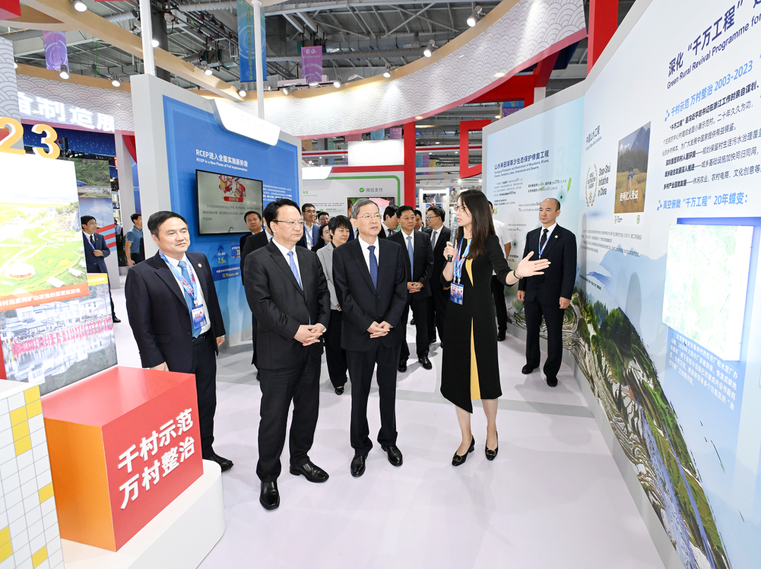 8月23日,第十四届中国—东北亚博览会开幕式暨第十二届东北亚合作高层论坛在长春隆重举行。全国人大常委会副委员长郝明金在省委书记景俊海,省委副书记、省长胡玉亭陪同下,巡视现代装备与新能源合作馆、现代农业馆、吉林馆、省区市合作馆等展馆。