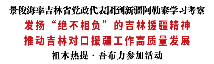 8月30日至9月1日,省委书记、省人大常委会主任景俊海率吉林省党政代表团到新疆阿勒泰地区,就认真贯彻习近平总书记关于新疆工作和对口支援工作的重要论述、推动吉林对口援疆工作高质量发展进行学习考察,深入我省对口支援的阿勒泰市、吉木乃县、布尔津县、哈巴河县,实地了解对口支援各项工作开展情况。新疆维吾尔自治区人大常委会党组书记、主任祖木热提·吾布力参加活动。
