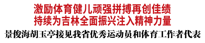 9月8日,在吉林省第十九届运动会暨省残运会开幕前,省委书记景俊海,省委副书记、省长胡玉亭在梅河口市接见奥运会冠军武大靖、宫金杰、周洋、李坚柔,残奥会冠军付彦龙等我省优秀运动员和体育工作者代表。