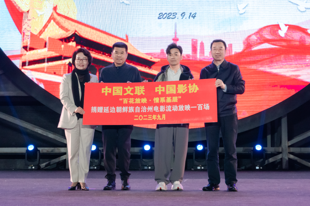 9月14日,“百花放映·情系吉林”——走进延边公益电影惠民慰问演出在中国朝鲜族民俗园举行。省委常委、州委书记胡家福,中国文联党组成员、书记处书记、中国电影家协会分党组书记张宏,中国电影家协会分党组成员、副秘书长曹俊,州政协主席康芳出席观看演出。
