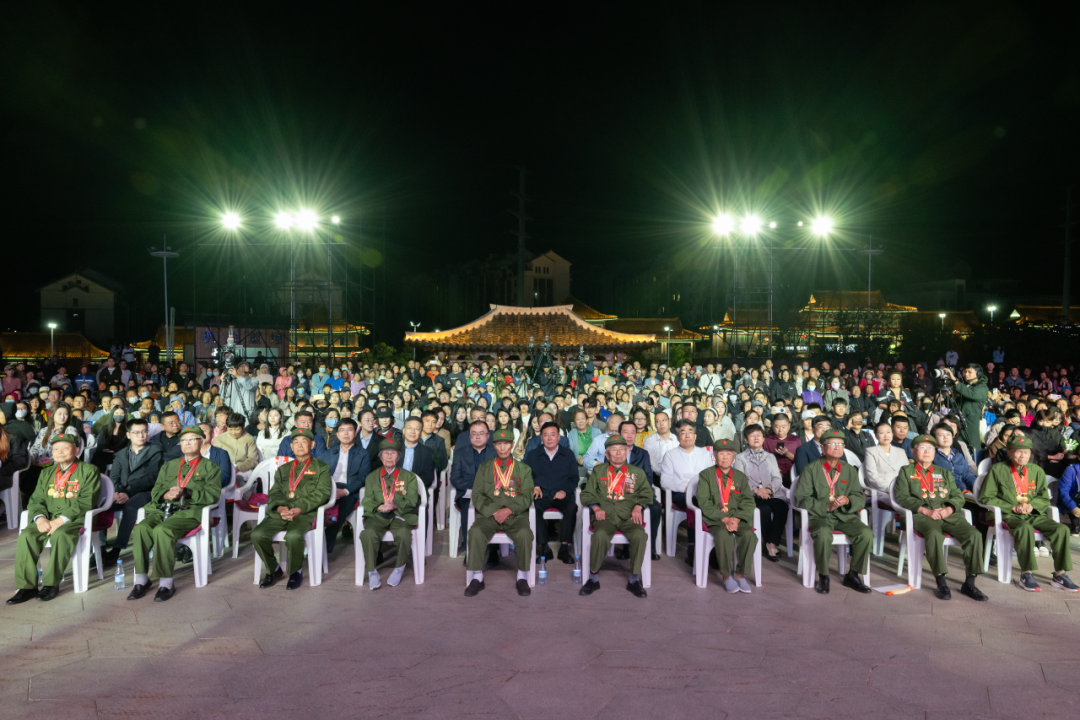 19时许,伴随着舞蹈《盛开的金达莱》的动人旋律和曼妙舞姿,慰问演出正式拉开帷幕。本次慰问演出由中央广播电视总台主持人周宇、青年演员侯京健共同主持。演出中,延边歌舞团带来的歌曲《难忘的那一天》、舞蹈《鼓秀春色》,生动描绘了在党的民族政策光辉照耀下,延边大地欣欣向荣、蓬勃发展的美好景象。著名演员阎青妤动情演唱的《映山红》,抒发了中华儿女对党和国家的无限感恩与热爱。小提琴表演艺术家张少博对《茉莉花》、《草原人民热爱您》的演奏深情唯美、婉转悠扬,为观众带来了极致的视听享受。著名演员赵晓明、郑晓宁、方晓莉倾情演绎的诗朗诵《不朽的英雄》,深情讴歌了革命先烈保家卫国的炽热情怀,表达了对革命先烈的无限敬仰和缅怀之情,深深感染了每一位观众。电影《八角笼中》的主创人员王宝强、陈永胜分享了影片的创作历程和感想收获,引发了现场观众的强烈共鸣……整场慰问演出在青年歌唱演员党中华深情演唱的歌曲《江山盛装》振奋人心的旋律中圆满落下帷幕,现场高潮迭起,掌声此起彼伏。