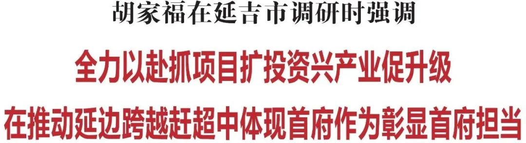 当天15时,胡家福在延吉市委、市政府主持召开座谈会,听取延吉市项目建设、经济运行等情况汇报。他指出,四季度是“一季管两年”的重要节点,是决胜负、定输赢的关键时期。四季度工作干得如何,既决定今年收官,也关乎明年开局。延吉市作为首府城市,具有其他县市不可比拟的优势条件,理应在全州发展大局中打头阵、挑重担、作示范。下一步,要更好发挥首府城市引领示范带动作用,坚持以实干论英雄、按贡献排位次的鲜明导向,聚焦全年发展目标任务,大力弘扬求真务实、以快制胜的精气神,以延吉发展强劲态势为全州跨越赶超助力添彩。要聚精会神抓好项目建设,突出抓好长图铁路延吉站迁建、帽儿山改造提升、延吉文创园等重大项目,加快推进吉浙对口合作产业基地、中高压IGBT功能开关等项目建设,科学组织项目冬季施工,围绕产业转型、基础设施、民生改善等领域提前谋划一批重大项目,为县域经济加快发展提供有力支撑。要牢固树立“制造业当家”理念,多措并举稳存量、挖增量、控减量,密切关注产业政策变化、行业发展趋势以及市场行情走势,准确了解企业订单、排产、产品价格变化等情况,支持重点企业扩大排产、释放产能,对困难企业实行“一对一、点对点”服务帮扶,抓好产销、融资对接等服务,着力稳住工业企业发展基本面。要千方百计保持消费热度,紧盯“双11”、“双12”、元旦等消费热点时段,引导餐饮、商贸等企业开展购物节、品牌展等活动,鼓励大型汽车、家电销售企业开展联合促销,聚焦冬季旅游抓紧推出冰雪节庆、运动赛事等特色冰雪旅游活动,围绕延大弹幕墙、中国朝鲜族民俗园等网红景点及特色美食等做好线上线下宣传推介,为各族群众和外地游客提供更加便捷、优质、多元的消费体验,推动形成不间断、波浪式消费热潮。要持之以恒开展招商引资、招才引智,紧盯国家产业政策导向,紧盯政策性开发性金融工具指向,紧盯央企布局东北投资东北建设东北方向,立足产业基础、项目布局,围绕延吉医美小镇、动漫产业园等重点项目,瞄准大型央企国企和行业领军企业,适时“走出去”实地考察,主动“请进来”对接洽谈,以三顾茅庐的诚意、锲而不舍的韧劲打动投资者,力争引进一批头部企业、落地一批重大项目,努力做大做强医美康养、文化旅游、人参加工、物流电商等产业,着力塑造经济发展新动能新引擎。要下大力气建强产业园区,科学确定空港区、高新区、延龙图等园区发展方向和产业布局,持续优化完善基础配套功能,落实落细各项惠企政策,着力提升园区承载力和吸引力,为项目落地、企业发展创造良好条件、提供有力保障,努力把产业园区打造成优质资源集聚地、头部企业投资向往地。