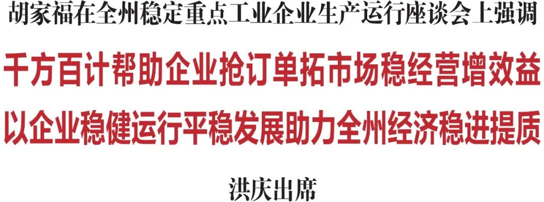 10月24日,省委常委、州委书记胡家福主持召开全州稳定重点工业企业生产运行座谈会,倾听企业当前困难,分析产业发展趋势,共同研究促进企业扭亏增盈的具体办法。他强调,要深入贯彻习近平总书记在新时代推动东北全面振兴座谈会上的重要讲话精神和关于民营经济发展的重要论述,精准对接企业需求,着力提升服务质效,千方百计帮助企业抢订单、拓市场、稳经营、增效益,以企业稳健运行、平稳发展助力全州经济稳进提质。