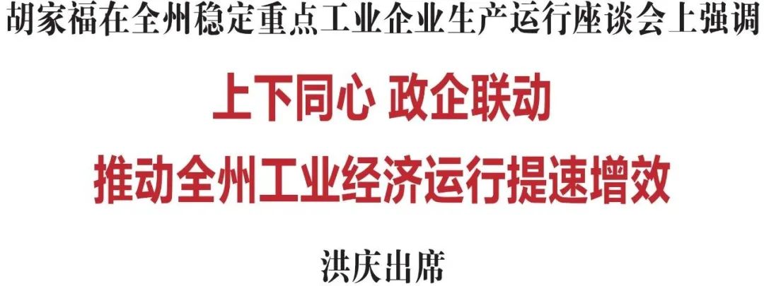 胡家福指出,当前,正值决战四季度、夺取全年胜的关键时期,打好打赢这场“收官战”,需要广大企业家发挥优势、担当作为,与党委、政府一道共同打拼、携手奋进。希望广大企业家发挥企业家精神、企业家智慧,保持当前强劲发展势头,集中精力稳生产、拓市场,以企业稳健运行推动全州工业经济平稳健康发展。要着力稳定生产经营,深度分析产品销路状况,“广撒网”寻找潜在意向客户,打通产销环节堵点、淤点,确保产能最大程度释放。要着力深化精益管理,合理调整生产计划,进一步加大排产力度,尽最大努力实现稳产满产。要着力提速项目建设,在保证质量和安全的前提下,统筹施工组织、优化资源配置,力争在建项目尽快投产达效,为工业经济加快发展贡献更多增量。