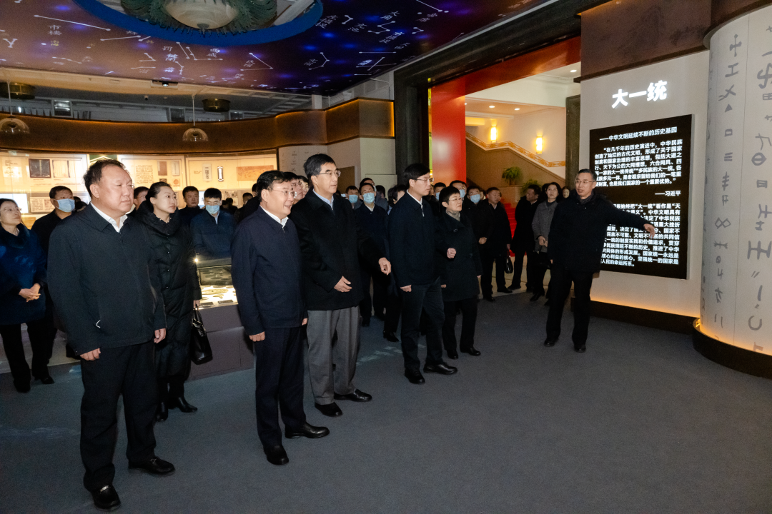当天上午9时,大家步入展区,沿着参观路线,认真聆听讲解,不时驻足观看。从“大一统”单元的花瓣墙、集思柱,到“大交融”单元的“‘铜’声共振,鼓舞中华”,再到“大团结”单元的一系列珍贵文物和资料,通过一个个古朴庄重的文物古籍、引人入胜的互动设计,让大家深入了解了波澜壮阔的中华民族形成发展历史,真切纵览了各族人民共同开拓辽阔疆域、共同书写悠久历史、共同创造灿烂文化、共同培育伟大精神的历史,亲身体验了博大精深的中华优秀传统文化,深刻感悟了中国共产党百年民族工作的伟大成就。