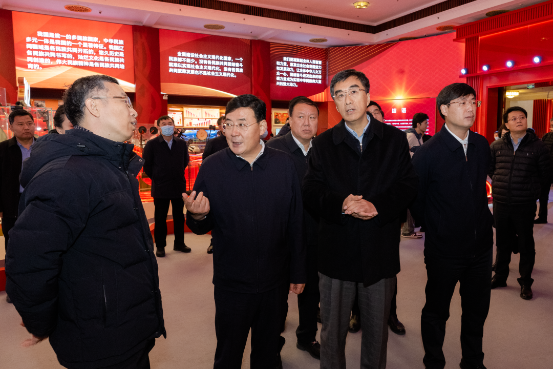 参观结束后,胡家福指出,展览主题鲜明、叙事宏大,生动呈现了中华民族交往交流交融的恢弘历史画面,集中展现了中国共产党成立以来中华民族发生的历史巨变,令人倍感震撼、受益匪浅。延边是全国唯一的朝鲜族自治州和最大的朝鲜族聚居地,连续五次被评为全国民族团结进步模范集体,理应在铸牢中华民族共同体意识上有更高的标准、更严的要求、更实的举措。全州各级党委、政府和各级领导干部要深刻理解习近平总书记关于铸牢中华民族共同体意识重要论述的核心要义、精神实质和实践要求,更加坚定自觉地把铸牢中华民族共同体意识贯穿于经济建设、政治建设、文化建设、社会建设、生态文明建设和党的建设全过程,不断创新发展民族团结进步事业,努力打造新时代延边民族团结进步事业升级版。要扎实推进中华民族共有精神家园建设,深入实施中华优秀传统文化浸润工程,坚定不移推广普及国家通用语言文字,全面推行使用国家统编教材,加快建设一批体现中华民族共同体理念的游园广场、文化长廊、特色街路、街景小品,打造“1+8+N”铸牢中华民族共同体意识教育实践基地体系,在增强对中华文化认同的基础上做好朝鲜族非物质文化遗产保护传承,让中华文化通过实物实景得到充分展现、直抵人心。要大力促进各族群众交往交流交融,充分考虑不同民族、不同县市的实际,统筹城乡建设布局规划和公共服务资源配置,深入推进民族团结进步创建工作“七+N进”活动,广泛开展“邻里节”、“百家宴”等群众性活动,创造更加完善的共居共学、共建共享、共事共乐的社会条件,从而推动实现各民族在空间、文化、经济、社会、心理等方面的全方位嵌入。要大力宣介中华民族共同体意识,积极创新传播方式,深入宣传中华民族的历史、中华民族共同体理念,深入宣传各民族共同开发延边、建设延边的历史经纬,深入宣传建州71年来在党的领导下延边发生的沧桑巨变,进一步讲好铸牢中华民族共同体意识延边实践的鲜活故事,引导各族群众牢固树立“四个共同”、“四个与共”、“五个认同”思想,让中华民族共同体意识根植延边各族人民心灵深处。