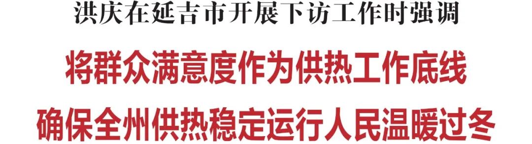 在延吉市公园街道党群服务中心,洪庆主持召开座谈会,听取了延吉市供热领域保障工作有关情况和全州供热工作安排,研究了信访群众诉求解决办法。洪庆指出,冬季供暖是重要的民生工程,要紧盯投诉率,建立健全供热监测评价机制,确保供暖达标、群众满意。全州各供热企业要着力提升服务水平,做好供热煤炭储备,保障热源能力匹配,畅通监督监管及投诉受理渠道,做好非供暖期设备维护保养,淘汰退出投诉量大、群众反映强烈的企业。各地政府要履行属地责任,守土有责、守土尽责,坚决守牢民生底线,高度关注老旧小区、“顶边底”、“孤岛房”、生活困难群众等重点区域、重点群体的取暖工作。州住建局要加强组织领导,强化调度和监管,持续压实属地兜底保障责任、行业监管责任和供热企业主体责任。要建立冬季供热工作专班,及时妥善处理群众反映的供热问题,以供暖的热度提升民生温度和群众满意度。各级各部门要始终把群众利益摆在首位放在心上抓在手上,全力以赴解决好群众急难愁盼问题,妥善化解信访“老大难”问题,切实维护群众合法权益。