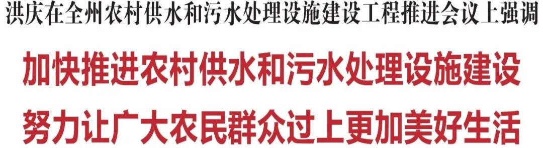 洪庆强调,要突出目标导向,按照统筹兼顾、先易后难、批次推进的原则,有力有序推进全州所有符合建设条件的行政村实现供水和污水处理设施全覆盖。要把农业农村作为财政支出的优先保障领域,更大力度向供水和污水处理设施领域倾斜。要认真做好EOD项目以及污染治理、农村生活污水治理、水冲厕所试点等项目的包装和谋划,积极争取上级资金支持。要发挥债券资金统筹作用,把握“窗口期”,切实抓好农村供水和污水专项债券申报工作。要用好州级扶持引导资金,实施奖惩机制,加快农村供水和污水处理设施建设进度。