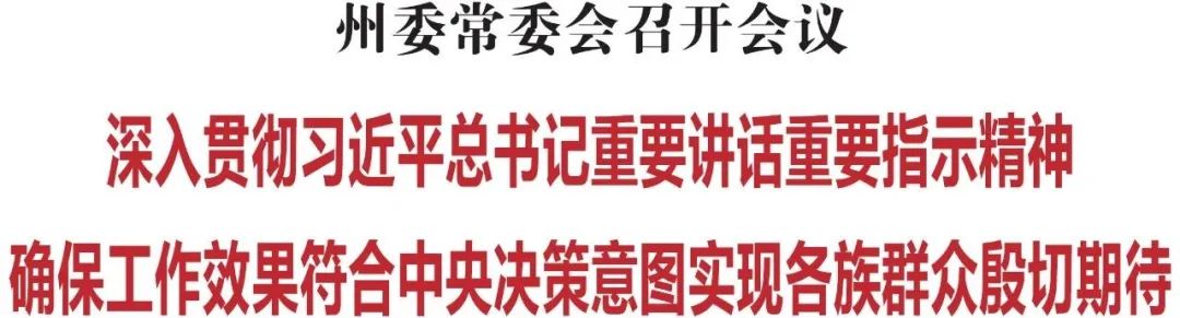12月22日,省委常委、州委书记胡家福主持召开州委常委会会议,传达学习习近平总书记对“三农”工作作出的重要指示精神和中央农村工作会议精神;传达学习习近平总书记在广西考察时的重要讲话精神;传达学习习近平总书记对甘肃临夏州积石山县6.2级地震作出的重要指示精神;传达学习习近平总书记在第十个国家宪法日之际作出的重要指示精神;传达学习习近平总书记在上海考察时的重要讲话精神和在深入推进长三角一体化发展座谈会上的重要讲话精神;听取关于2023年全州意识形态工作责任制落实情况的汇报。