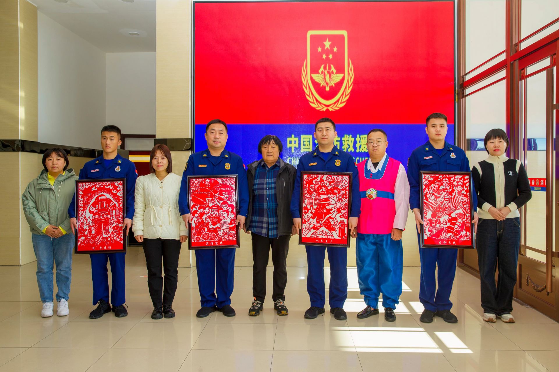 在消防站,记者也感受到消防员们生活里的温情。体能训练馆环境温馨设施完备,堪比一流健身房;电子阅览室,方便读书学习,电影放映室,丰富精神生活;干净的阳光洗衣房,洗浴室,充满家的气息。还有,当地居民群众对消防指战员们的深深敬意和浓浓关爱。河南街道永盛社区工作者和居民们经常和消防站开展共建活动,为给消防指战员送去他们喜欢的剪纸作品,还有朝鲜族阿姨去亲手教做紫菜卷和饭团,让消防指战员们在辛苦之余能吃上民族特色美食。和消防员们亲如一家的老阿姨卜丽峰说,“他们远离家人,不惧危险,守护着我们的平安,我们也总想为他们做点事,相互守护吧!”