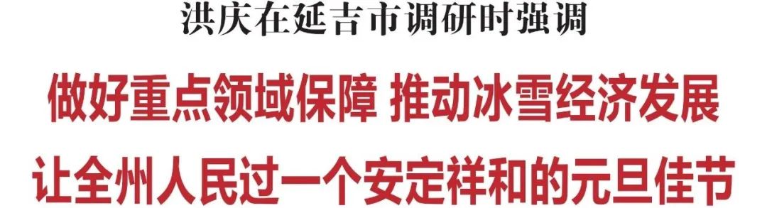 12月30日,州委副书记、州长洪庆就节日安全、市场保供、道路交通、冰雪旅游、学校冰雪运动及清雪能力保障等工作到延吉市调研,并看望慰问节日期间坚守一线的干部职工,代表州委、州政府向他们致以亲切问候和美好祝福。