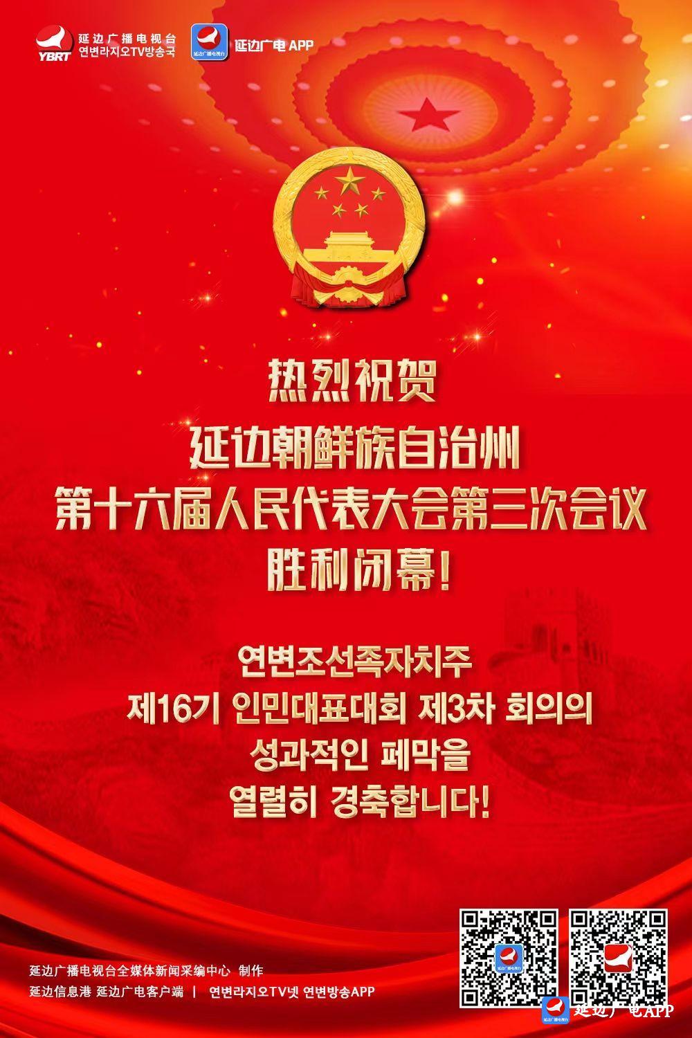 【延边广电海报】热烈祝贺延边朝鲜族自治州第十六届人民代表大会第三次会议胜利闭幕!