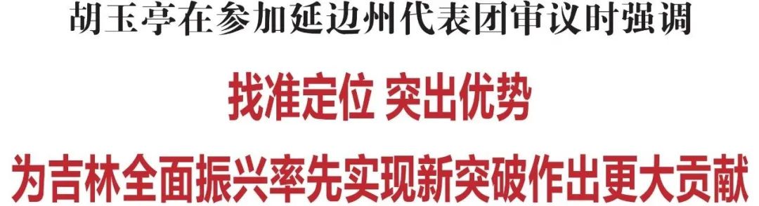 在充分肯定延边州过去一年工作后,胡玉亭指出,延边州是我国唯一朝鲜族自治州,在全省经济社会发展中地位十分重要。要进一步坚定信心、压实责任、放大优势,在全省振兴发展大局中勇于担当、多作贡献。
