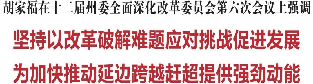 2月23日,省委常委、州委书记胡家福主持召开十二届州委全面深化改革委员会第六次会议。他强调,要深入学习贯彻习近平总书记关于全面深化改革的重要论述,按照中央深改委会议和省委深改委会议的部署要求,坚持以改革破解难题、应对挑战、化解风险、促进发展,为加快推动延边跨越赶超提供强劲动能。