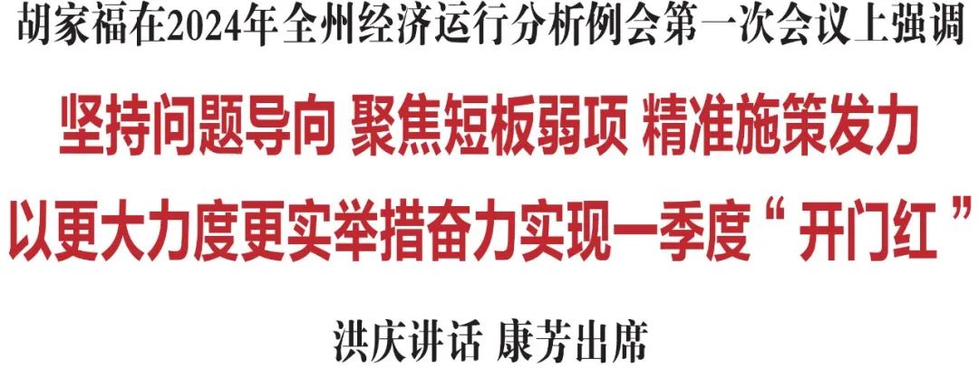 胡家福指出,今年以来,全州上下紧扣跨越赶超目标任务,千方百计扩投资、稳工业、促消费、增活力,先后推出稳工业“10条”举措、冰雪旅游季、“三八”节促消费活动等一系列务实举措,为推动全州经济平稳运行奠定了良好基础。但必须清醒地认识到,全州规上工业总产值、规上工业增加值、限额以上社会消费品零售额与去年同期相比出现回落,必须坚持问题导向、强化目标牵引,拿出切实可行的管用招法尽快加以解决。