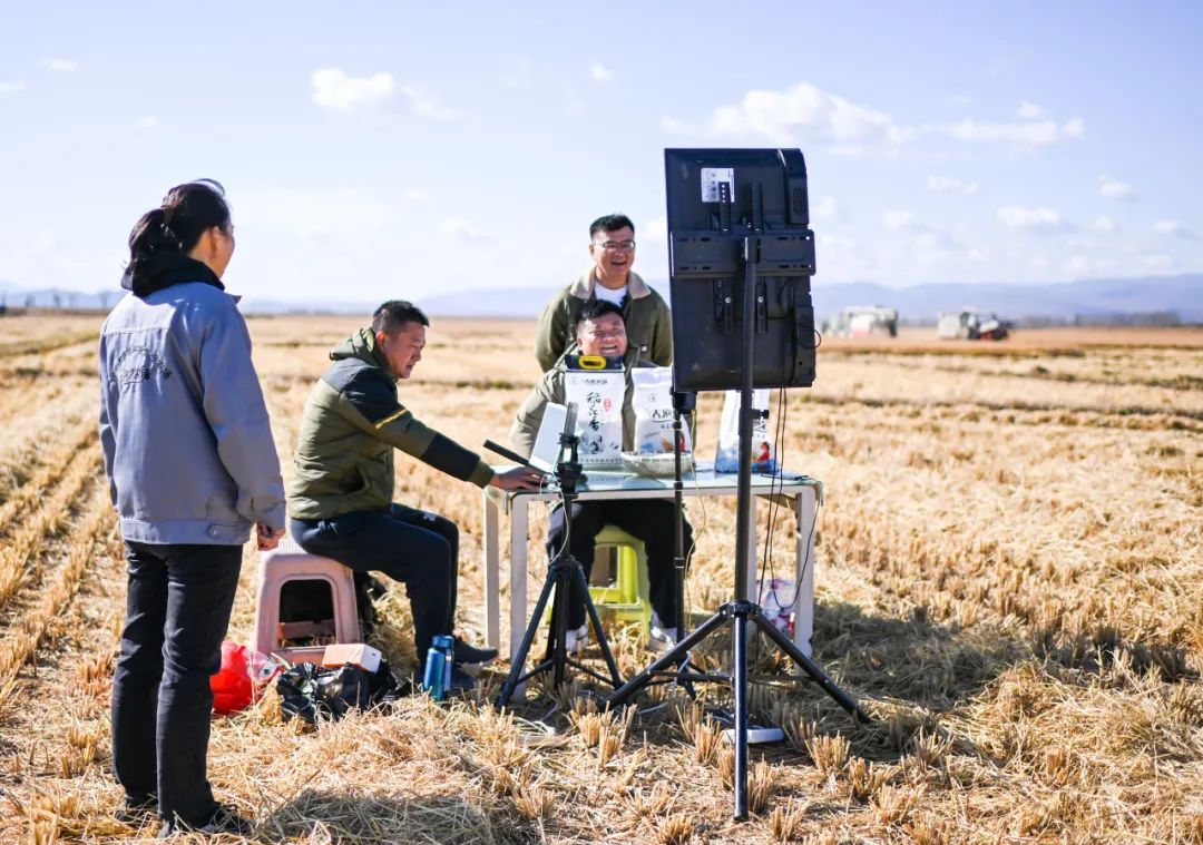 ▲在吉林省延边朝鲜族自治州珲春市三家子满族乡东岗子村,“80”后巾帼“新农人”刘春艳在稻谷飘香的田野上驾驶着水稻收割机,在她身后,几个电商主播将刘春艳刚刚收割好的水稻通过网络卖向全国。新华社记者 颜麟蕴 摄