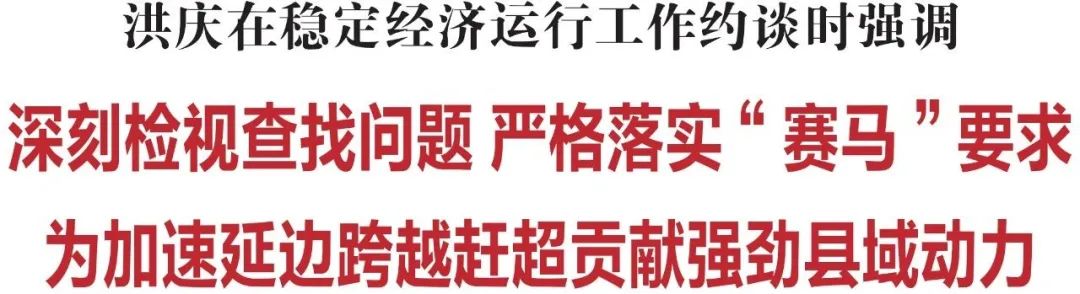 洪庆强调,和龙市要把重点放到培育增量上来,坚持抓重大项目,全力以赴抓好明岩水利枢纽前期工作,加快重点文旅项目建设,做好各领域升规入统统计工作,为稳住全州大盘作出应有的贡献。珲春市要找准域内优势资源和上级政策支持的结合点,深入谋划包装项目,继续落实好助企纾困政策,强化工作调度,吸引更多民间资本参与产业链、产业集群和园区建设。敦化市要加快工业转型升级,做精核心医药产业,发展壮大重点企业,培育战略新兴产业集群,加快推进重点新能源项目开工,超前完善产业类项目前期手续,推动工业触底反弹。安图县要多措并举活消费,加快发展旅游地产,升级改造安图网红打卡地,加大旅游宣传推介力度,引导重点企业组织促销活动,充分释放消费对经济增长的拉动作用。