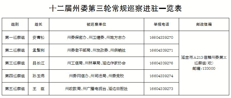 近期,州委巡察工作领导小组召开州委第三轮常规巡察工作动员部署会议,组织5个州委巡察组于2024年4月中旬至6月下旬,对州委网信办、州委老干部局、州委保密办、州委党校、延边作家协会、延边日报社、州发改委、州工信局、州司法局、州卫健委、州林草局、州政数局、州供销社、州广播电视台、州地方志办等15个部门单位开展巡察监督。截至4月24日,各州委巡察组全部完成进驻,开展巡察了解阶段工作。