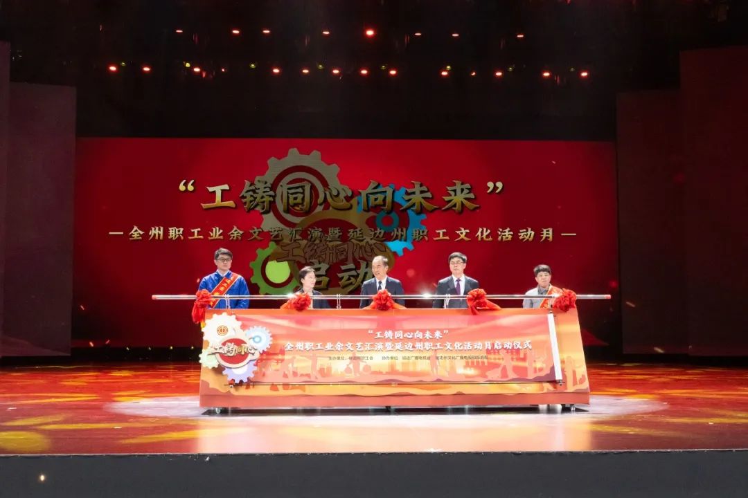 仪式上,隋明利、金基德、王秋菊与全国五一劳动奖章获得者玉明姬、延边工匠邱浩峰共同按下启动装置,标志着延边州职工文化活动月正式启动。