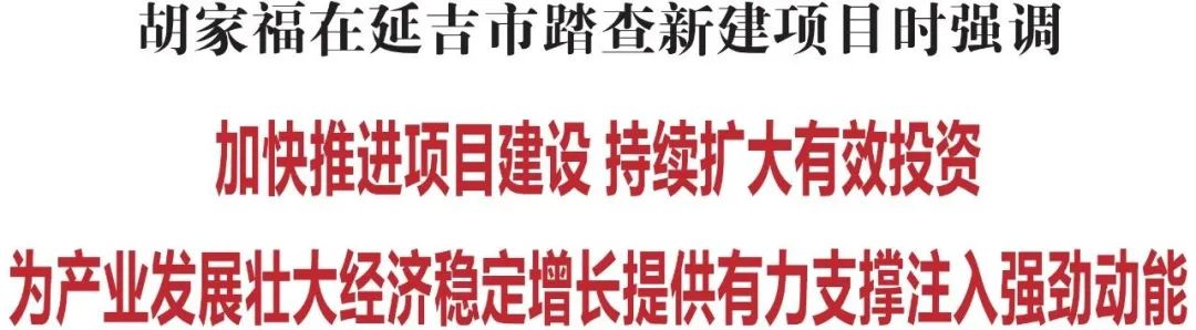 5月28日,省委常委、州委书记胡家福到延吉市实地踏查新建项目建设情况。他强调,要深入贯彻习近平总书记在新时代推动东北全面振兴座谈会上的重要讲话精神,牢固树立“项目为王”的理念,坚持整体资源观,加快推进项目建设,持续扩大有效投资,为产业发展壮大和经济稳定增长提供有力支撑、注入强劲动能。