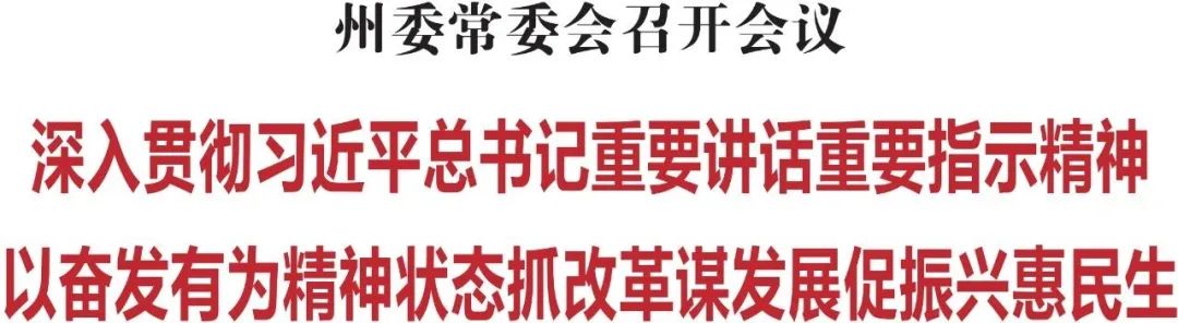 5月30日,省委常委、州委书记胡家福主持召开州委常委会会议,传达学习习近平总书记在企业和专家座谈会上的重要讲话精神;传达学习习近平总书记在山东考察时的重要讲话精神;传达学习习近平总书记在中央政治局第十四次集体学习时的重要讲话精神;传达学习5月27日中央政治局会议精神;传达学习习近平总书记对旅游工作作出的重要指示精神,听取关于全国旅游发展大会精神及我州贯彻落实习近平总书记重要指示和全国旅游发展大会精神举措的汇报。