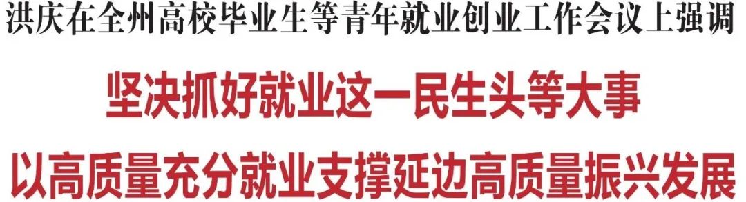 洪庆指出,青年就业问题既是民生之要,又是发展之基,涉及千家万户,关乎国家未来,要强化政策支撑,加大省州促进高校毕业生就业创业若干措施宣传力度,按时足额拨付就业生活补贴、求职创业补贴、安居补贴等已承诺的各类补助资金。大力稳岗扩岗,用足用好政策性岗位,灵活设置就业门槛,拓宽就业渠道,广泛征集各类企事业单位高校毕业生就业岗位,积极搭建政校企合作平台,创造优质就业岗位,吸引高校毕业生来延就业创业。优化就业服务,超前谋划就业招聘,坚持精准服务、兜底包保,根据毕业生需求提供政策宣传、岗位推荐、职业指导和就业见习等服务。加强分类施策,加大对退役军人、零就业家庭、低保家庭、脱贫户、残疾人、长期失业人员等群体的就业兜底帮扶力度。通过加强法律法规宣传、规范企业用工行为、建立调解机制、加强监察力度和推动社会共治等措施,保护劳动者合法权益。