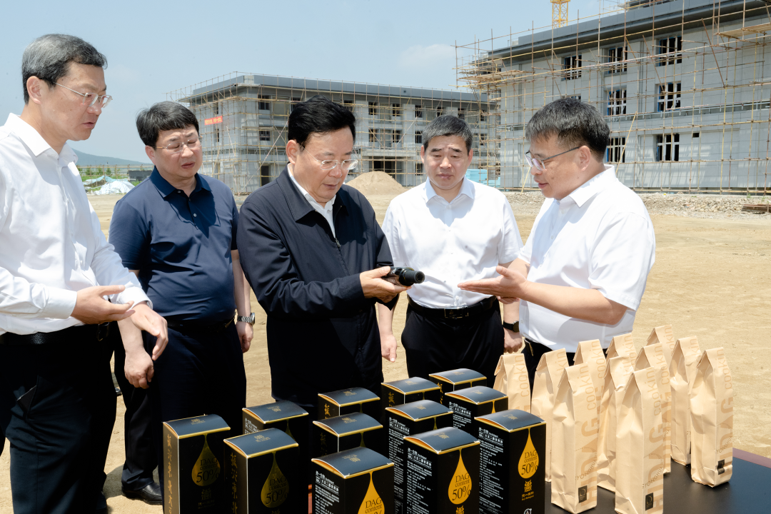 “设备安装调试进展如何?”、“新建厂房什么时候投产?”胡家福先后来到馥鑫雨松茸系列产品深加工、璟参堂保健食品及固体饮料加工、千济方肽益超免素加工、特色农产品三产融合示范基地(大豆肽)项目建设现场,进厂房、看产品、听介绍,详细了解施工进展、产品种类、原料来源、市场销售等情况。胡家福指出,安图县地处长白山麓,拥有良好的生态环境和优质的资源禀赋,发展特色食品产业具备得天独厚的优势和条件。要持续加大招商引资力度,充分发挥现有企业牵引带动作用,精准开展以商招商、链式招商,招引更多优质项目和企业“入链进群”,加快推动产业集群化、规模化、绿色化发展。希望企业在产品研发、食品包装、品牌创建、市场开拓上下足功夫,加强与大学、大所、大企的务实合作,积极开展技术研发和成果转化应用,努力推出一批独创性、引领性的拳头产品,更好满足消费需求、赢得市场空间。
