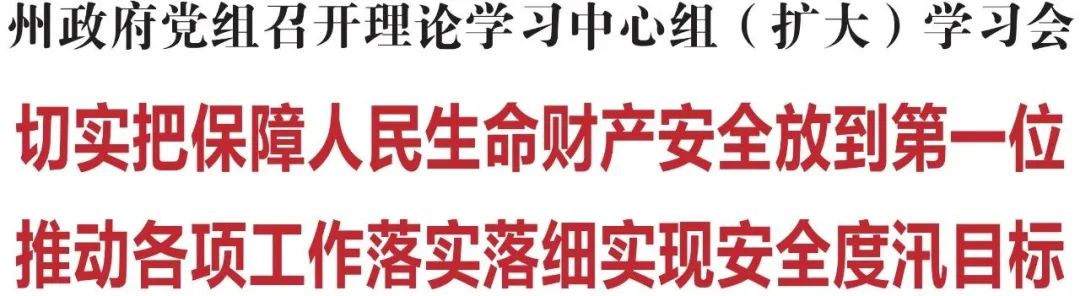 6月21日,州委副书记、州长洪庆主持召开州政府党组理论学习中心组2024年第1次集体(扩大)学习会,深入学习贯彻落实习近平总书记对防汛抗旱工作重要指示精神,提升全州各级干部应对自然灾害的综合能力。