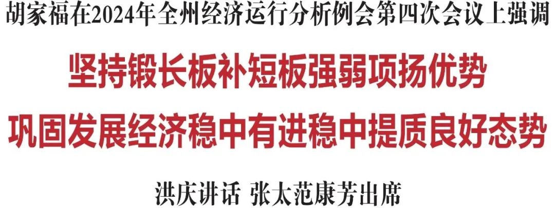 胡家福指出,今年以来,全州上下坚持稳中求进的工作总基调,聚焦项目建设、工业挖潜、激活消费、对外贸易等重点任务,积极主动沟通协调、争取支持,想方设法破解难题、打通堵点,全州经济运行呈现稳中有进、稳中提质的发展态势,支撑经济跨越赶超的有利条件进一步积累。但必须清醒地看到,当前经济运行中工业经济持续承压、重大项目整体偏少、消费挖潜难度加大等问题依然突出,必须深入分析问题症结,尽快拿出对策举措,为实现年度既定目标扫清阻力、清除障碍。