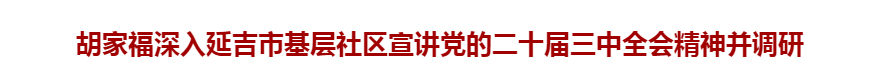 5日,省委宣讲团成员、省委常委、州委书记胡家福到延吉市北山街道丹英社区、建工街道延青社区宣讲党的二十届三中全会精神并调研。他强调,要深入学习贯彻党的二十届三中全会精神,认真落实习近平总书记关于基层治理的重要论述,始终坚持人民至上、民生为大,从百姓急难愁盼中找准改革发力点、突破口,把群众大大小小的事情办实办好,让延边各族人民生活更安心、更舒心、更暖心。