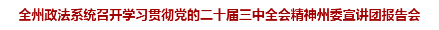 根据州委统一部署,8月6日,全州政法系统召开学习贯彻党的二十届三中全会精神州委宣讲团报告会。州委宣讲团成员、州委常委、州委政法委书记周金星作宣讲报告。
