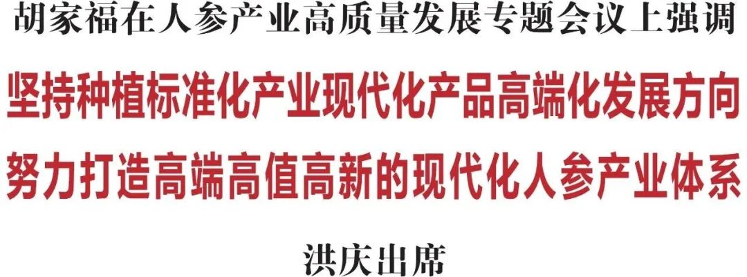 洪庆在讲话中指出,要学习借鉴发达国家人参产业发展经验和成熟经营模式,研究推动创新建立人参产业高质量发展的体制机制。要强化人参种植规模管控,认真研究园参、林下参差异性发展路径,严格市场准入,开展标准化种植。要探索依托国有经营平台设立发展基金、开展统购统销,鼓励人参加工企业订单式收购,解决企业资金难题。要聚焦新质生产力发展,建立质量标准,创建优质品牌,积极探索延边地方标准主导国家标准制定,有针对性地研究破解制约人参产业高质量发展的瓶颈问题。