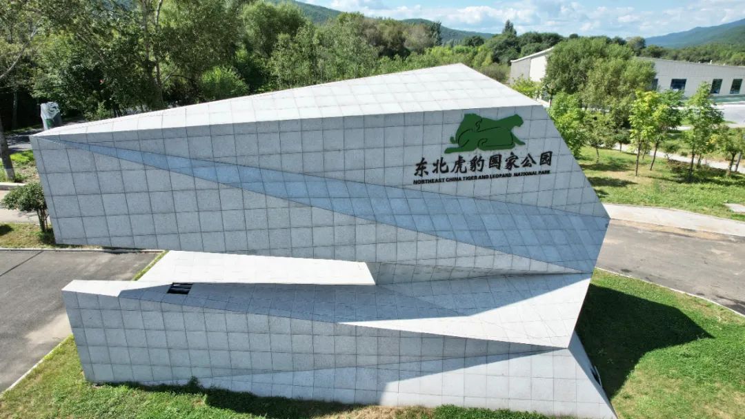 从汪清县东光镇磨盘山村附近的东北虎豹国家公园入口社区继续前行,一座富有现代气息的建筑便缓缓出现在眼前,这便是东北虎豹国家公园监测宣教中心(汪清),随处可见的独特标志格外引人注目。“东北虎豹国家公园标识在设计时追求动物与自然有机融合的理念,造型来源于秦代虎符,并采用中国传统绘画中的线来表达东北虎豹的独特神韵,意在表达‘山助虎豹威,虎豹增山雄’的生态主题。”据东北虎豹国家公园监测宣教中心(汪清)负责人李涛介绍,虎呈卧姿,展现其气势的威严;豹子悠然踱步的状态,突出东北虎豹国家公园“尊重自然规律,保护生态完整性”的目的,虎豹相向,动静结合,形象地展现出山岭与峻石,行云与流水。标识选取绿色为主体颜色,也预示着东北虎豹国家公园完整的生态系统为东北虎豹提供了绿色和谐的家园。