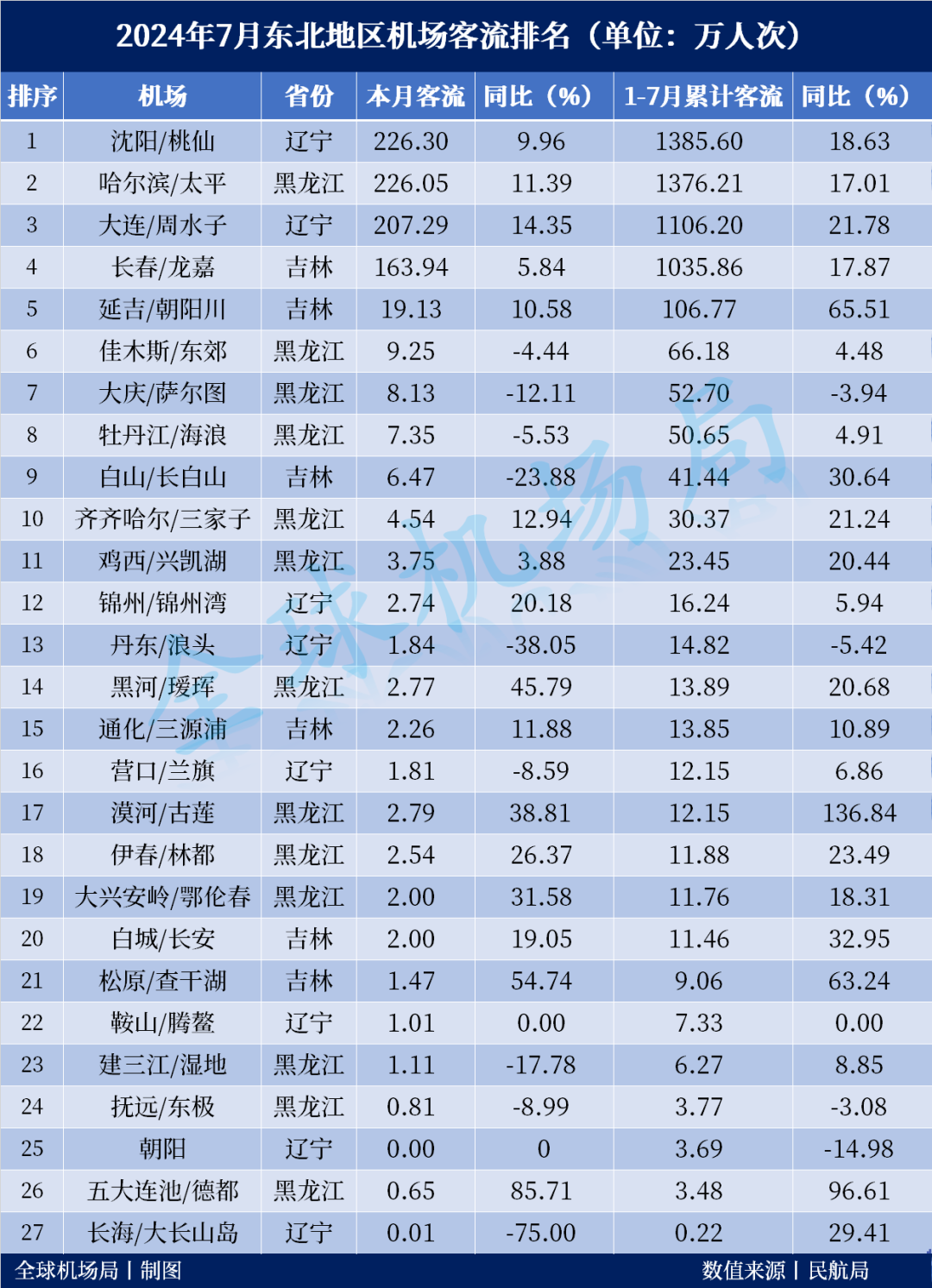 2024年7月东北地区机场客流出炉,沈阳桃仙机场以1385.6万人次拿下东北地区的首位,同比增长18.63%,在7月的单月旅客吞吐量为226.3万人次,这也是今年沈阳桃仙机场的单月客流新高,也是继2月之后,时隔四个月,沈阳桃仙再度在单月客流上突破200万人次。哈尔滨太平机场以1376.21万人次位列第二位,同比增长17.01%,在7月的单月客流为226.05万人次,同样哈尔滨太平也是时隔四个月之后,其单月客流再度重返200万人次以上,不过距离该机场在今年2月创下的238.57万人次的今年单月旅客吞吐量新高,还有一定的差距。