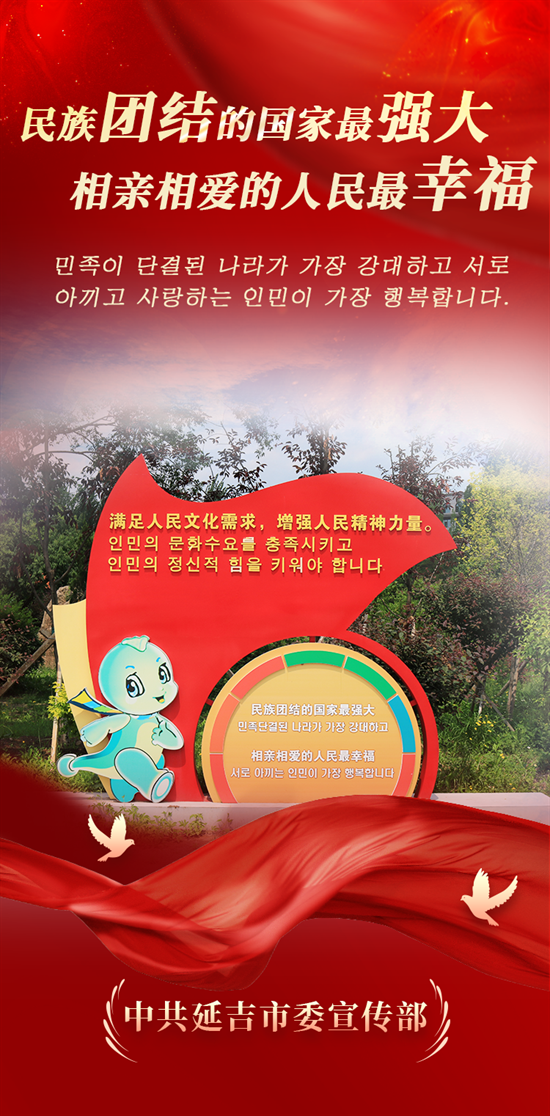 一直以来,延吉奋力打造民族团结进步“升级版”,在有形有感有效上下功夫,推动铸牢中华民族共同体意识深入人心。针对全市24个重点点位,在有形有感有效的景观小品、公益广告中全面嵌入传承优秀传统文化、中华民族共同体理念等相关元素,营造“中华民族一家亲”的亲切氛围。
