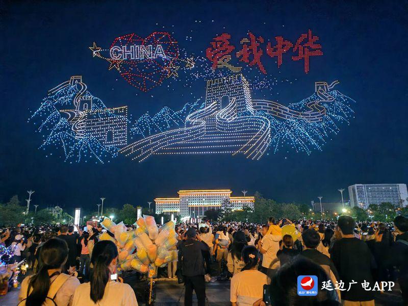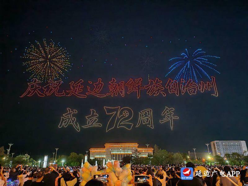 9月3日,延吉市委、市政府在州政务中心南广场和布尔哈通河畔举行了无人机编队表演及焰火晚会,庆祝延边朝鲜族自治州成立72周年。