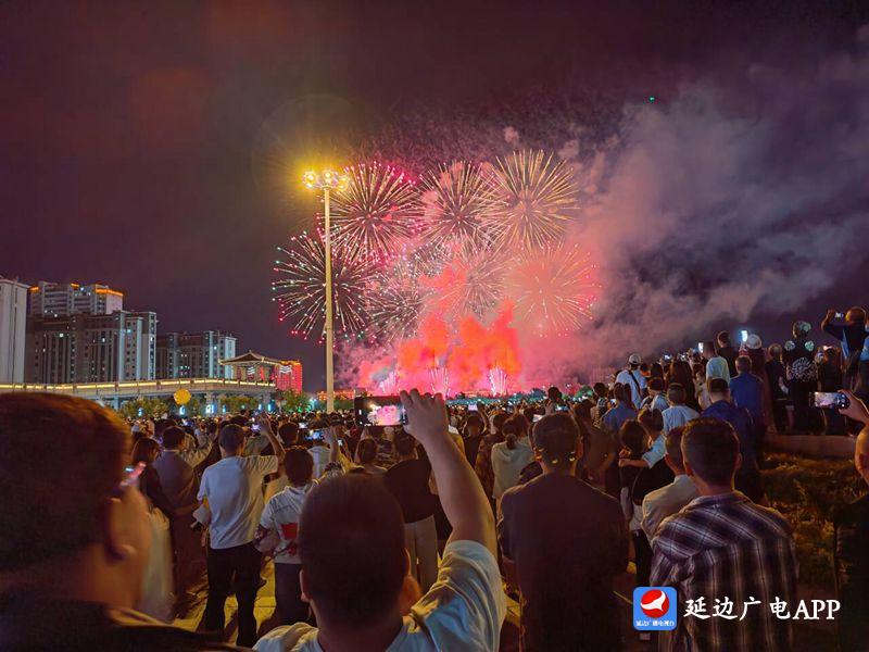 焰火表演,以“欢庆时刻 共享美好”“魅力延边 七十二变”“民族团结 多元绽放”“共襄盛举 擘画未来”四个篇章展现对延边朝鲜族自治州72年辉煌历程的庆祝,总燃放烟花数量达1万8千余发。市民和游客纷纷举起手机记录精彩瞬间,为延边祝福!(记者:刘焕辉)