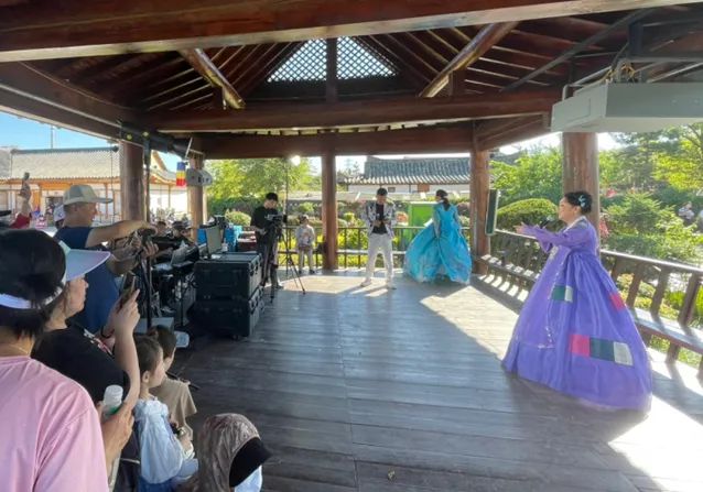 9月3日,延边歌舞团抖音“六进”活动走进中国朝鲜族民俗园,通过线上平台将延边特色文化推广到更广阔的领域,用优美的歌声庆祝延边朝鲜族自治州成立72周年。