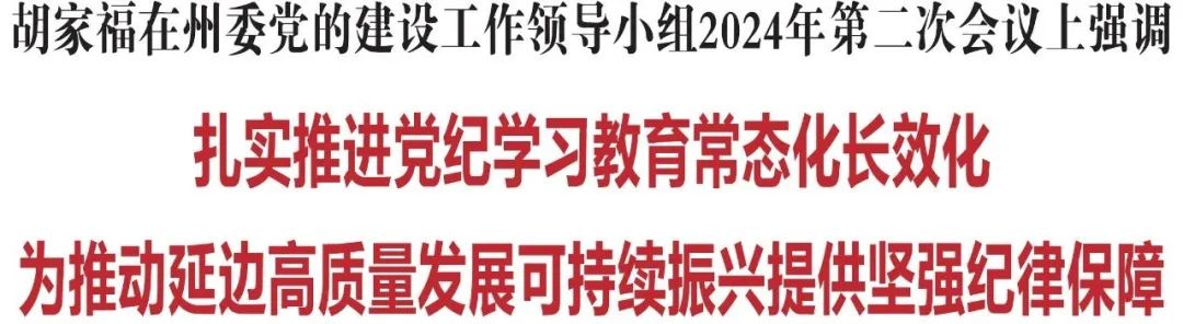 胡家福强调,党的集中性教育有阶段,但纪律学习教育无止境。全州各级党组织要深入学习贯彻习近平总书记关于全面加强党的纪律建设的重要论述,按照“巩固深化党纪学习教育成果”的要求,总结运用党纪学习教育形成的好经验好做法,建立经常性和集中性相结合的纪律教育机制,常态长效抓好党纪学习教育,进一步把纪律挺起来、规矩立起来、作风实起来,切实把党纪学习教育成效转化为推动延边高质量发展、可持续振兴的强大动力。